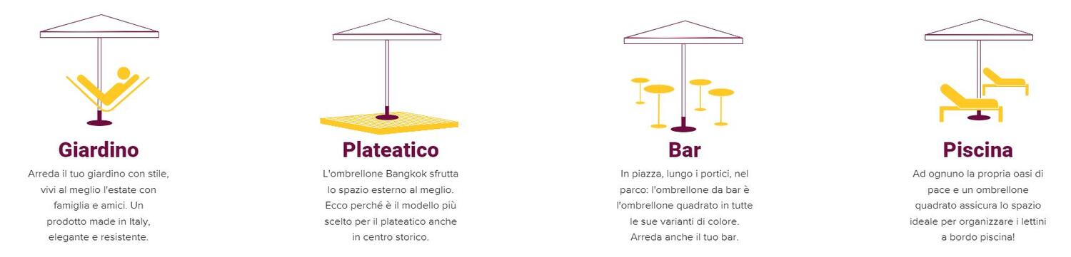 Il modello Bangkok è il classico ombrellone quadrato per l'arredo esterno.