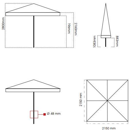 Dimensioni Ombrellone Aperto: | 2,2x2,2 metri |