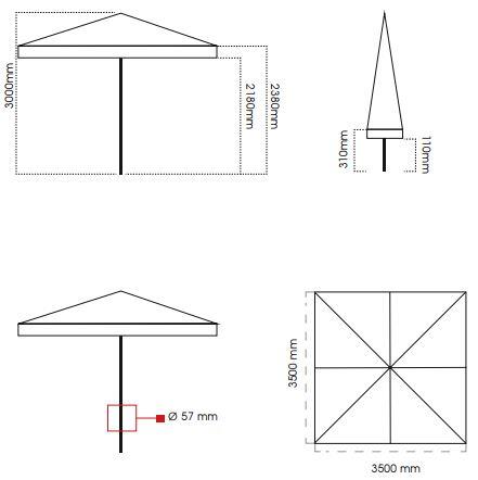 Dimensioni Ombrellone Aperto: | 3,5x3,5 metri |